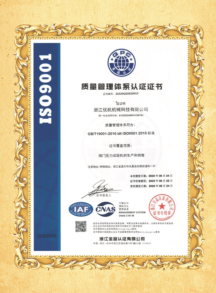 ISO9001質(zhì)量管理體系認證證書