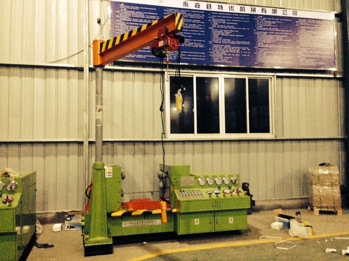 三、接通電源,按油泵啟動按鈕,檢查電機(jī)轉(zhuǎn)動方向,是否正確(順時針方向)進(jìn)行5—1 O分鐘空載運(yùn)轉(zhuǎn)后,調(diào)節(jié)油泵壓力在5 0MPa進(jìn)行試機(jī),各種動作,檢查各管路有無泄漏,發(fā)現(xiàn)不良現(xiàn)象,應(yīng)立即停機(jī)排除。