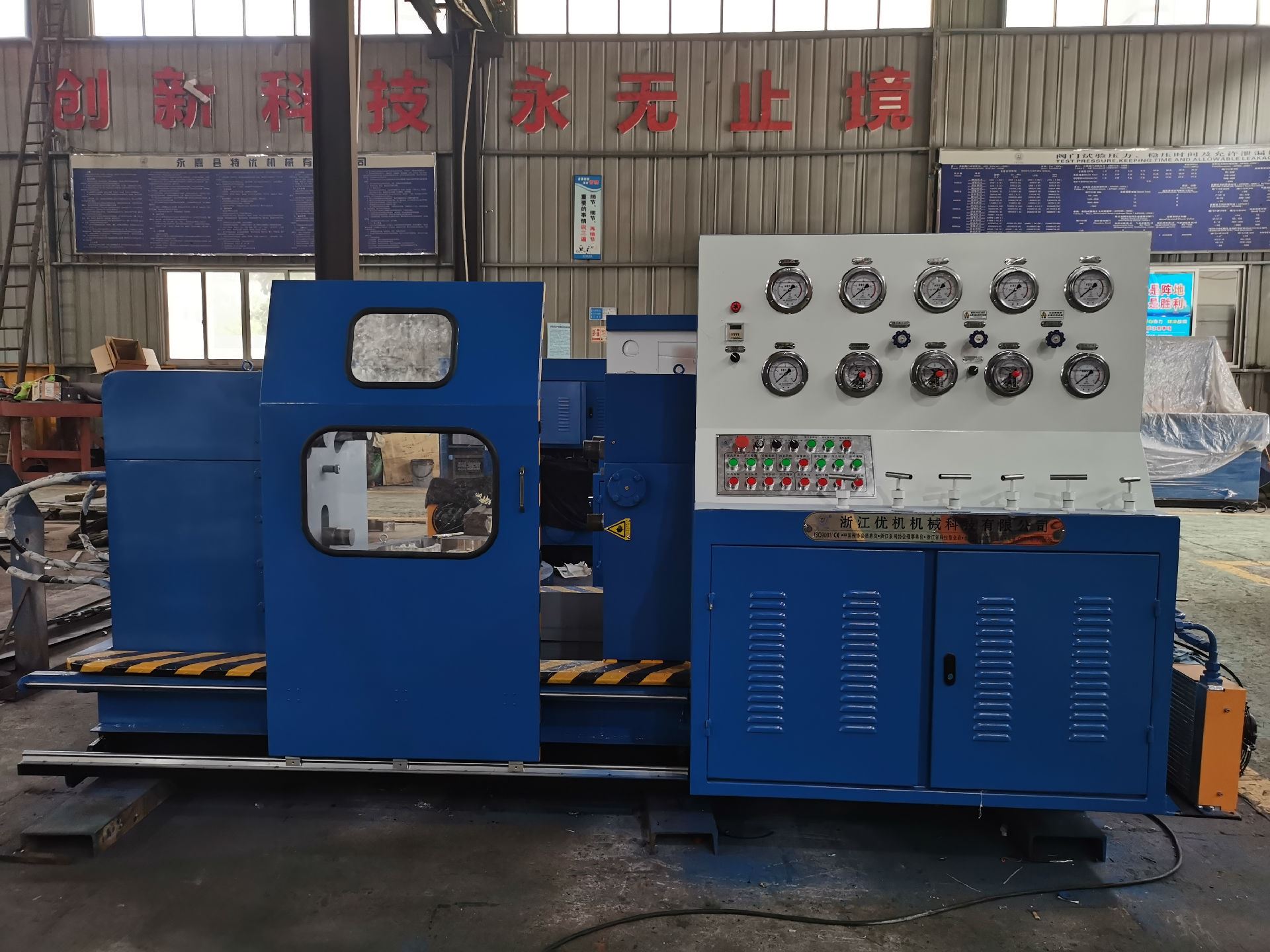 本機(jī)集機(jī)電、液壓、試壓、液體介質(zhì)貯存循環(huán)使用于一體,具有功能完善、性能穩(wěn)定、自動化程度高等特點(diǎn)。廣泛用于公稱通徑DNl 5-1000mm的直通式法蘭及螺紋連接各類高、中、低壓閥門的強(qiáng)度、密封和泄漏量等各項(xiàng)性能測試。測試介質(zhì):水、氣、油。最高密封試驗(yàn)壓力 32.0MPa,強(qiáng)度48 0MPa。