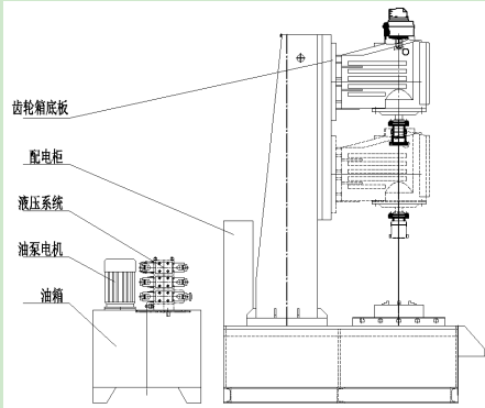 JLX型旋塞閥研磨機由立柱機架、導軌及升降機構、齒輪箱旋轉機構、裝夾機構等組成,旋轉機構的旋轉中心線相互垂直。立柱與齒輪箱底板的升降功能通過液壓油缸來實現(xiàn),通過按鈕可進行上升或下降。